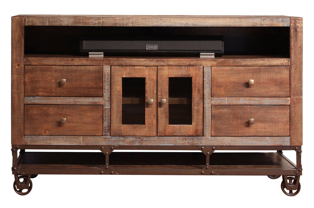 62" TV Stand w/2 Glass doors, 4 Drawers