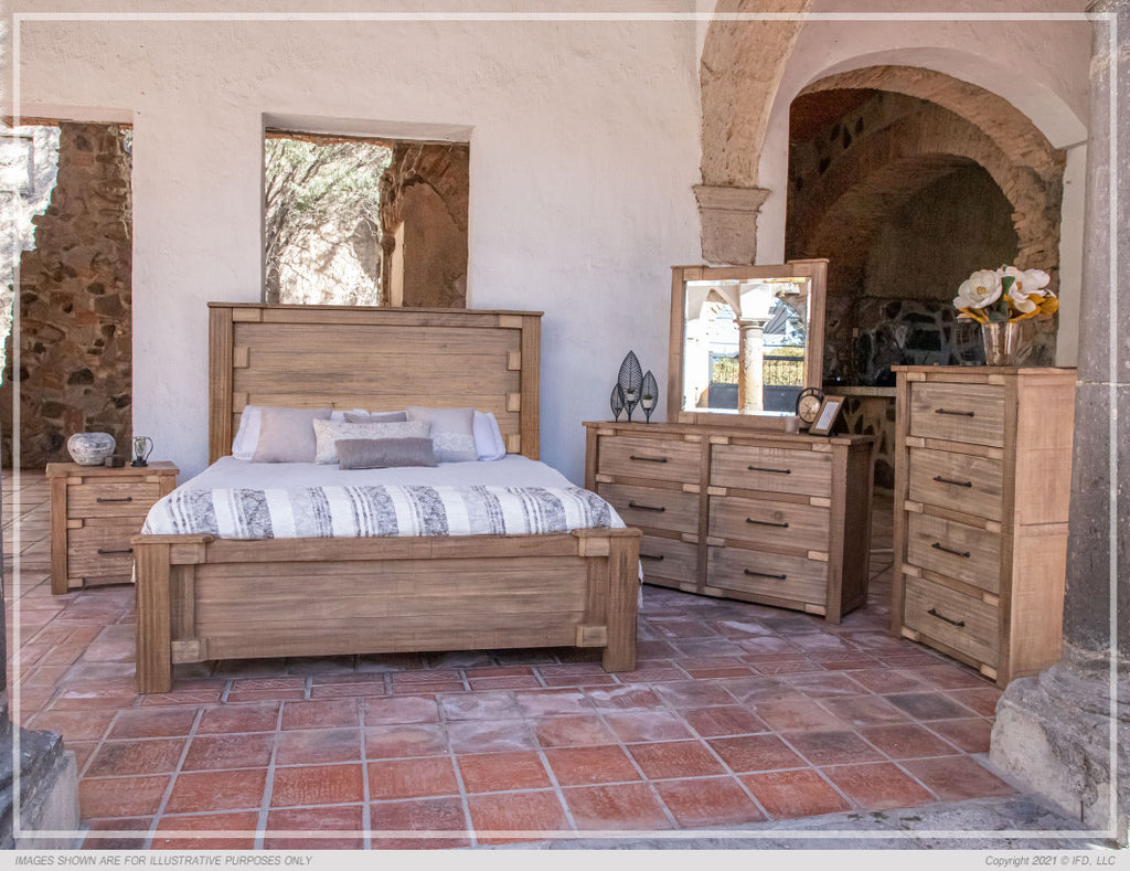 6pc Set includes Bed, 2 nightstands, Dresser, Mirror and a Chest of Drawers.