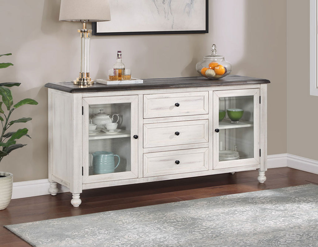 - Saw mark, wirebrush distressing and antique rustic white finish rubthrough add to time-tested charm of the collection