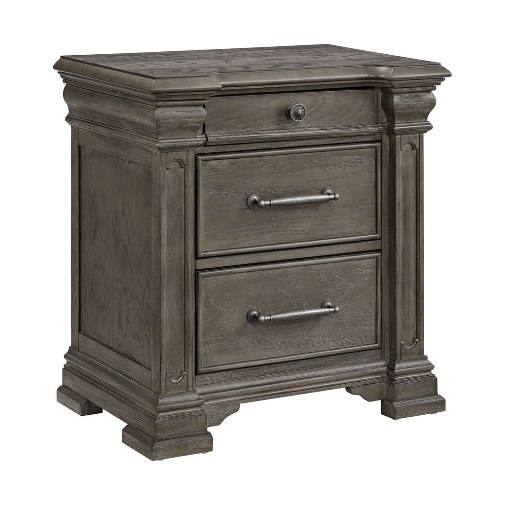 Blissfully unwind at the end of your day and relax like nobility with this transitional storage bed. Featuring a beautifully carved headboard and footboard that exude powerful charm, this bed will make you feel like royalty. Built-in lighting lets you easily enjoy your latest novel before bed or slowly wake up without the harsh lighting of your bedside lamp. Footboard storage provides you with a convenient and discreet place for storing extra linens or winter blankets and a sophisticated place to sit for evening conversations. Finished in a modern grey tone, this bed perfectly blends traditional elegance with contemporary appeal.