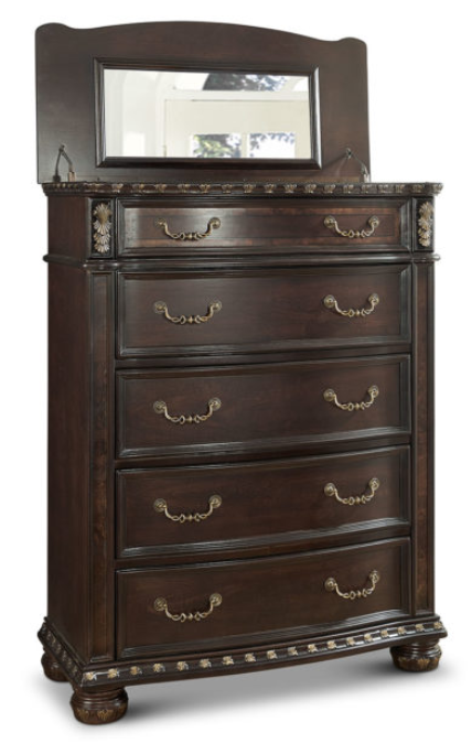 6pc Set includes Bed, 2 nightstands, Dresser, Mirror and a Chest of Drawers.