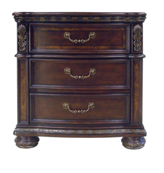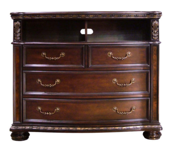 Large-scaled yet romantic bedroom collection from Steve Silver Company. The Poster bed is available in king or queen sizes and is complemented by several options in storage pieces. Crafted from cherry and nappa burl veneers and poplar solids, Monte Carlo features a multi-step rich, lustrous cocoa finish.