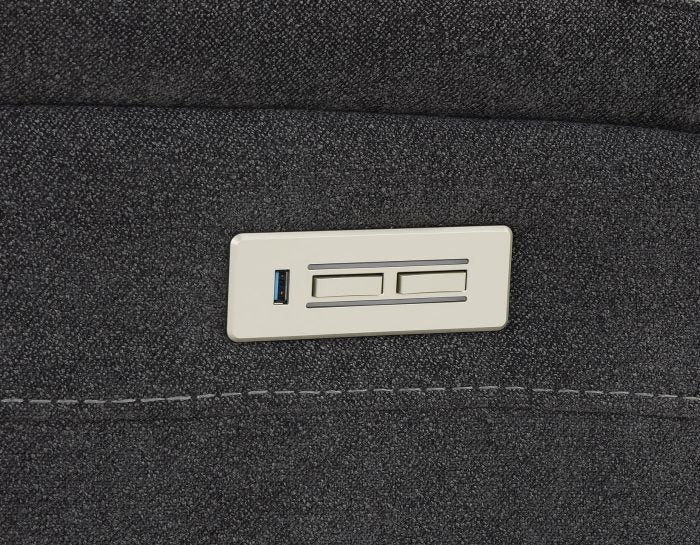 - USB Charging Port on outside arm and wireless charging deck on console for charging your smartphone or tablet.