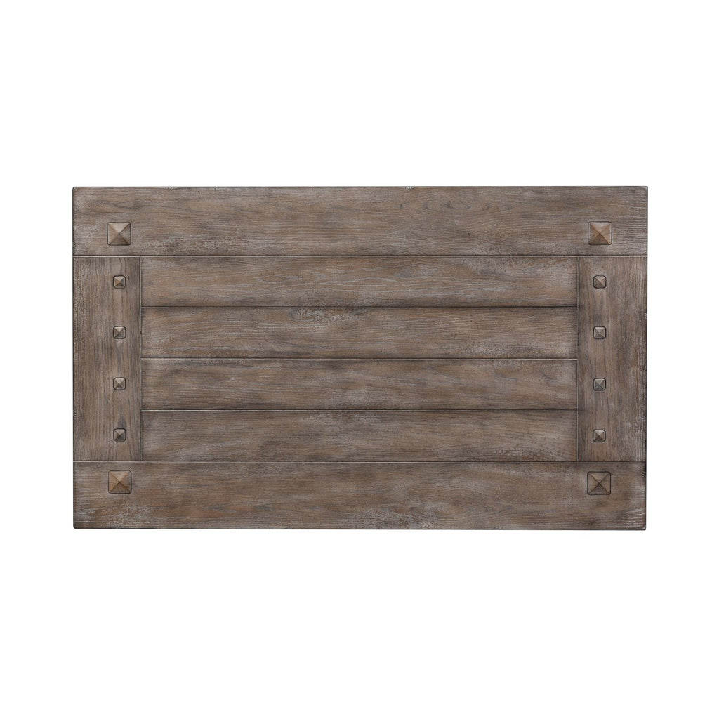 Elevate your space with the Spanish style Sedona cocktail table. Crafted of rubberwood solids and white oak veneers, this piece features a heavy distressed white finish and gravel top, appealing planked top with square peg accents, a planked bottom shelf for additional storage, casters for easy mobility, and is anchored by Spanish style square turned legs. Also available in an alternate finish, this gorgeous cocktail table will be a great addition to any traditional style space.